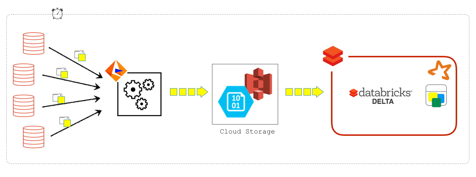 In this setup, Informatica was responsible for consolidating change sets from various sources into an Oracle data warehouse. Databricks jobs would then fetch these change sets from Oracle, usually once a day via JDBC, and proceed to update tables within Databricks. However, this method posed several challenges.